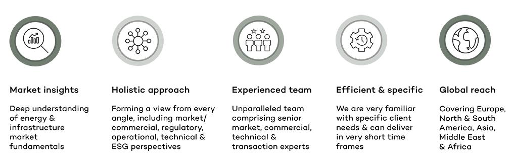 By combining our management consulting and engineering skills, we give our clients deep insights into their goals based on our in-depth knowledge of energy and infrastructure assets and markets.